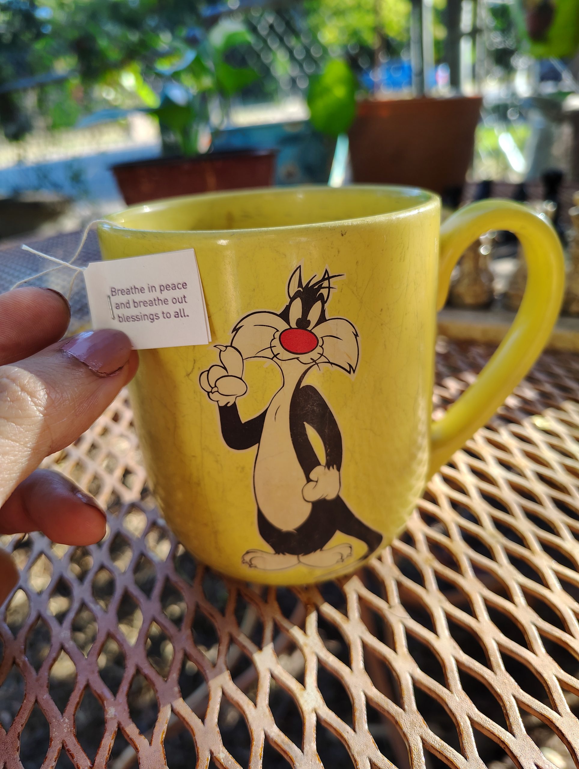 “Breathe in peace and breathe out blessings to all.” Courtesy of my Yogi tea and Sylvester the cat.